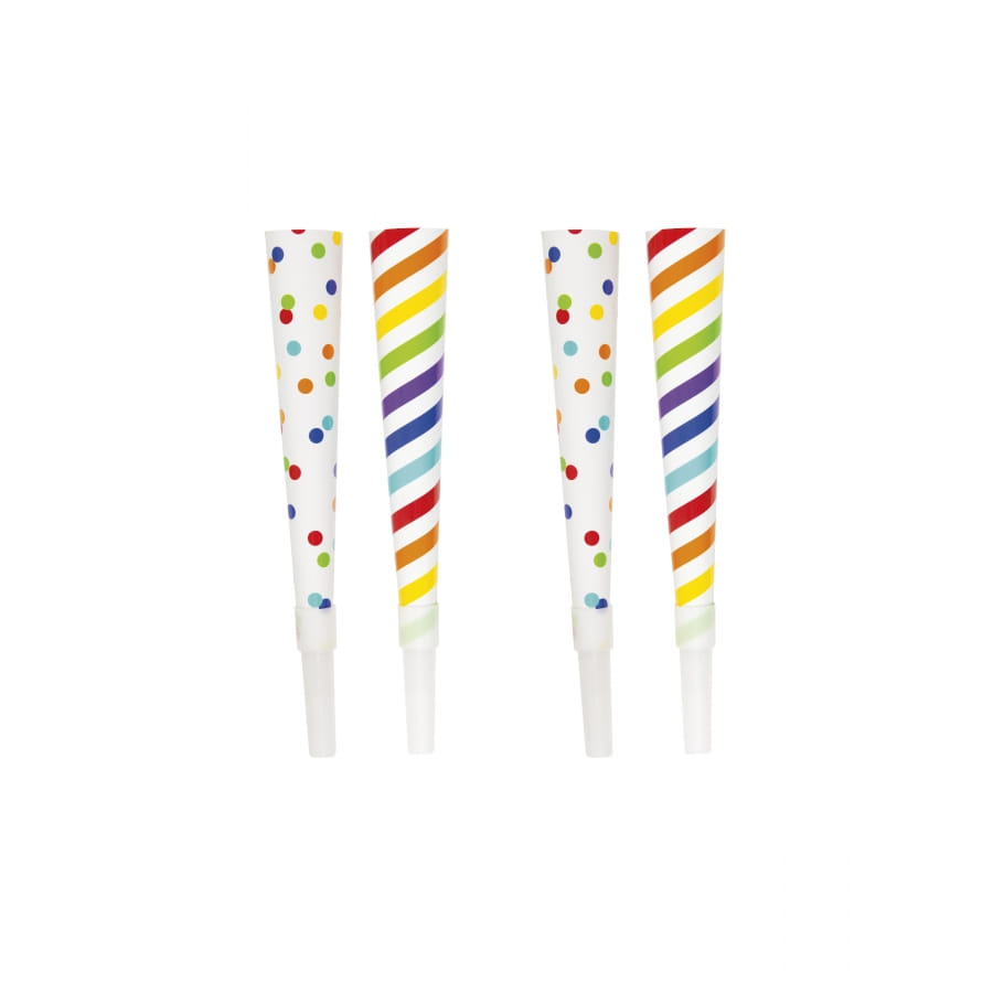 Vous rendrez inoubliables les premières minutes du Nouvel An grâce à ces 6 trompettes cotillons colorées à pois et rayées.