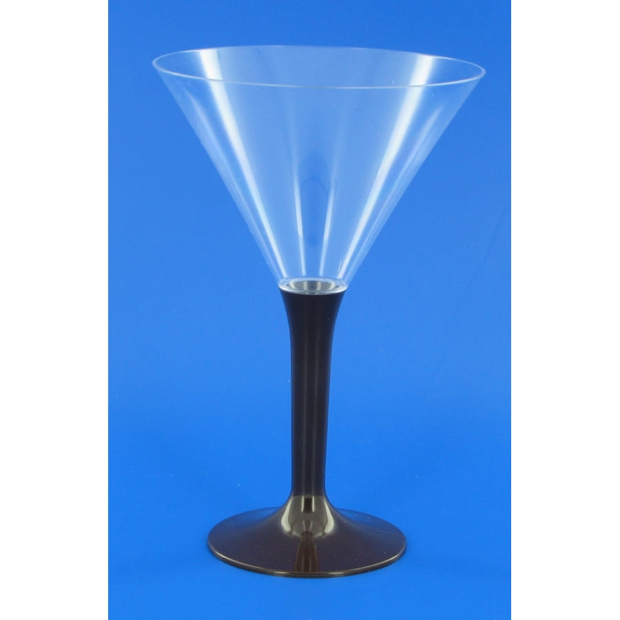 Sachet contenant 6 verres à cocktail. Ils sont tous transparents, mais leur pied est de couleur chocolat. Cette couleur donnera une touche singulière à votre couvert à l'occasion de la Noël, d'un anniversaire ou d'un goûter.