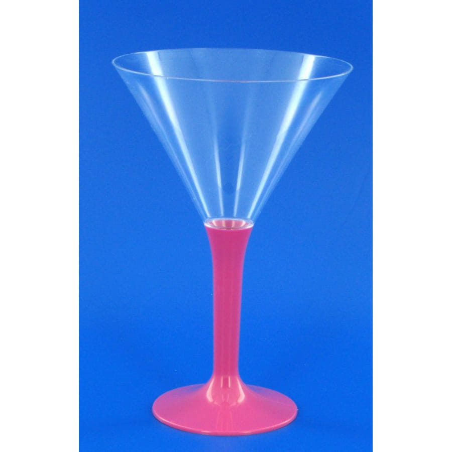 Sachet contenant 6 verres à cocktail transparents, avec pieds de couleur fuschia. Ces verres sont très jolis et parfaits pour des occasions telles que la Saint Valentin ou un mariage.