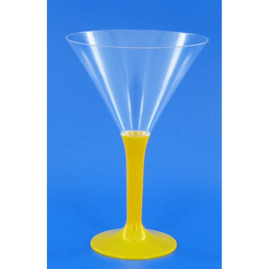 Verre à pied à cocktail, vendu en sachet de 6. Cet accessoire est transparent avec un pied de couleur jaune. Utilisez ce set pour la Pâques, un mariage, un anniversaire ou le Nouvel An.