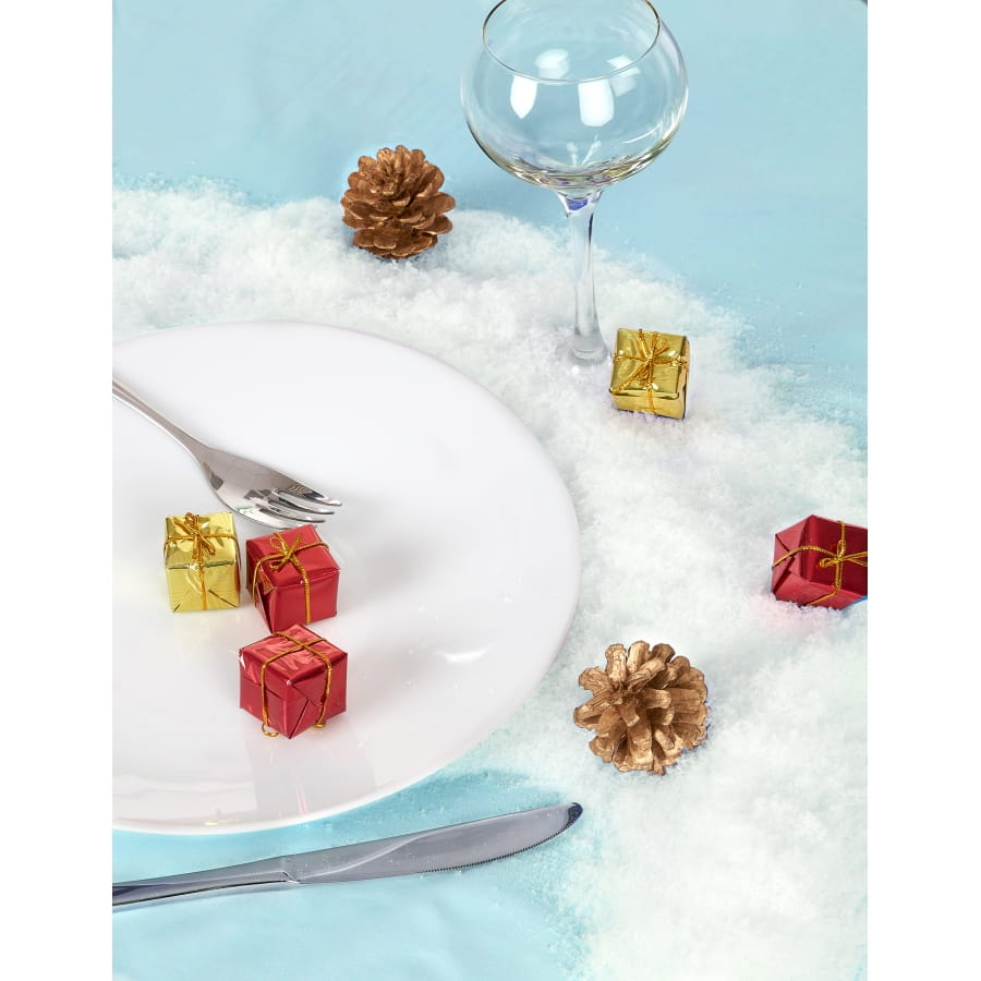 Sapins, tables, salon ou extérieur, tout devient chic en y saupoudrant nos 75g de neige en poudre.