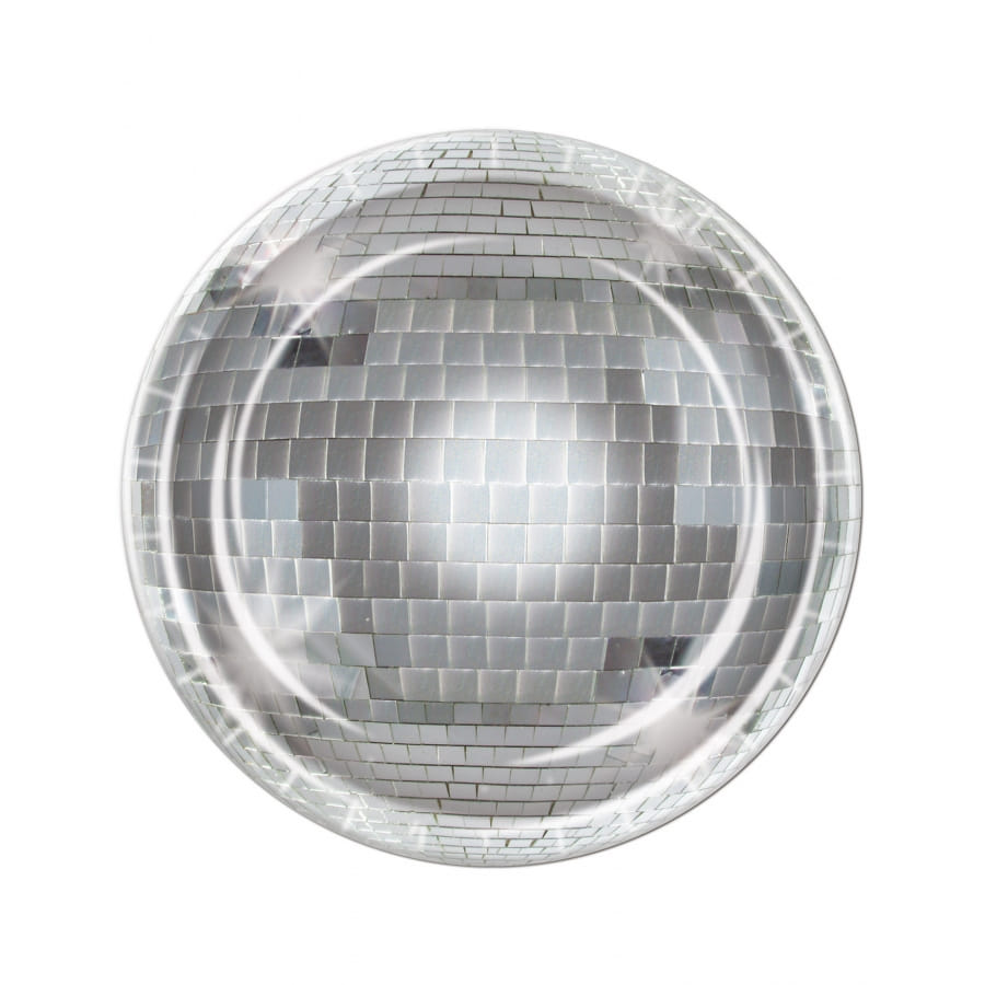 À l'occasion d'une soirée sur le thème disco, surprenez vos convives avec ces 8 assiettes en carton boule à facettes mesurant 23 cm.