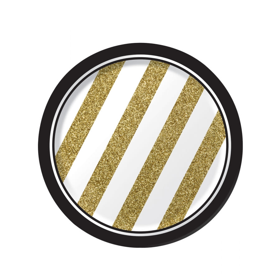 Pour un goûter d'anniversaire, un baby shower, un mariage ou autres, voici le lot de 8 assiettes en carton Noir et Doré qu'il vous faudra.