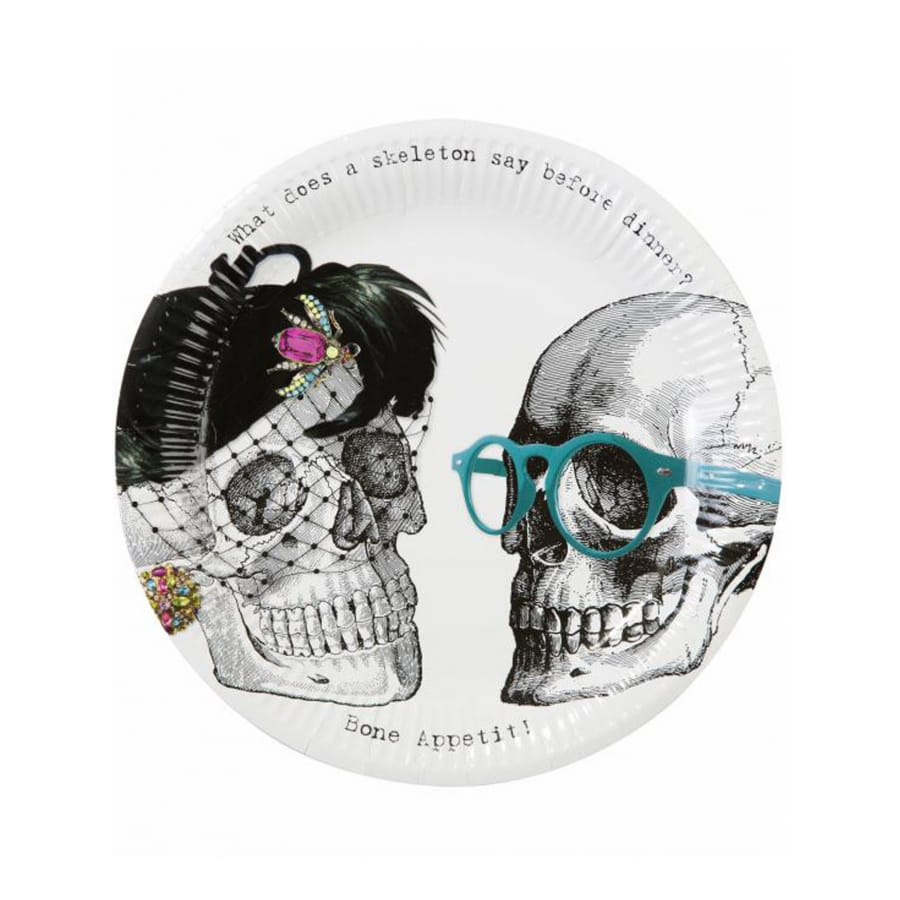 Les 8 assiettes squelette charleston de 23 cm sont en carton.