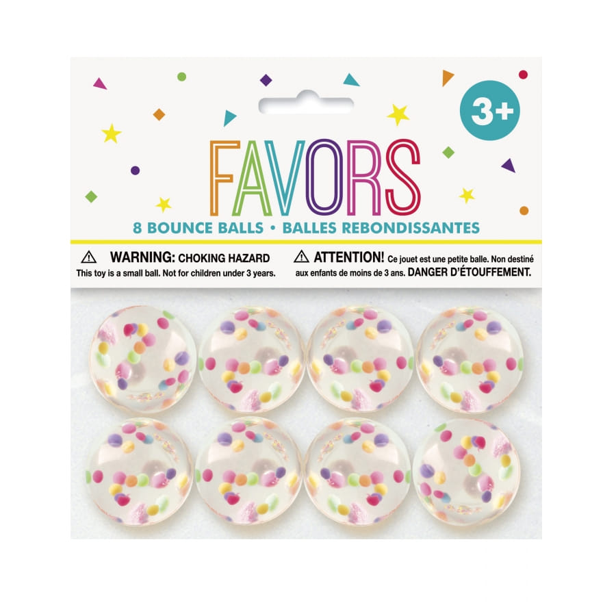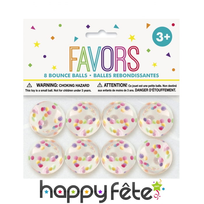 Ces balles vendus par lot de 8 sont transparentes et remplies de confettis multicolores incrustés.