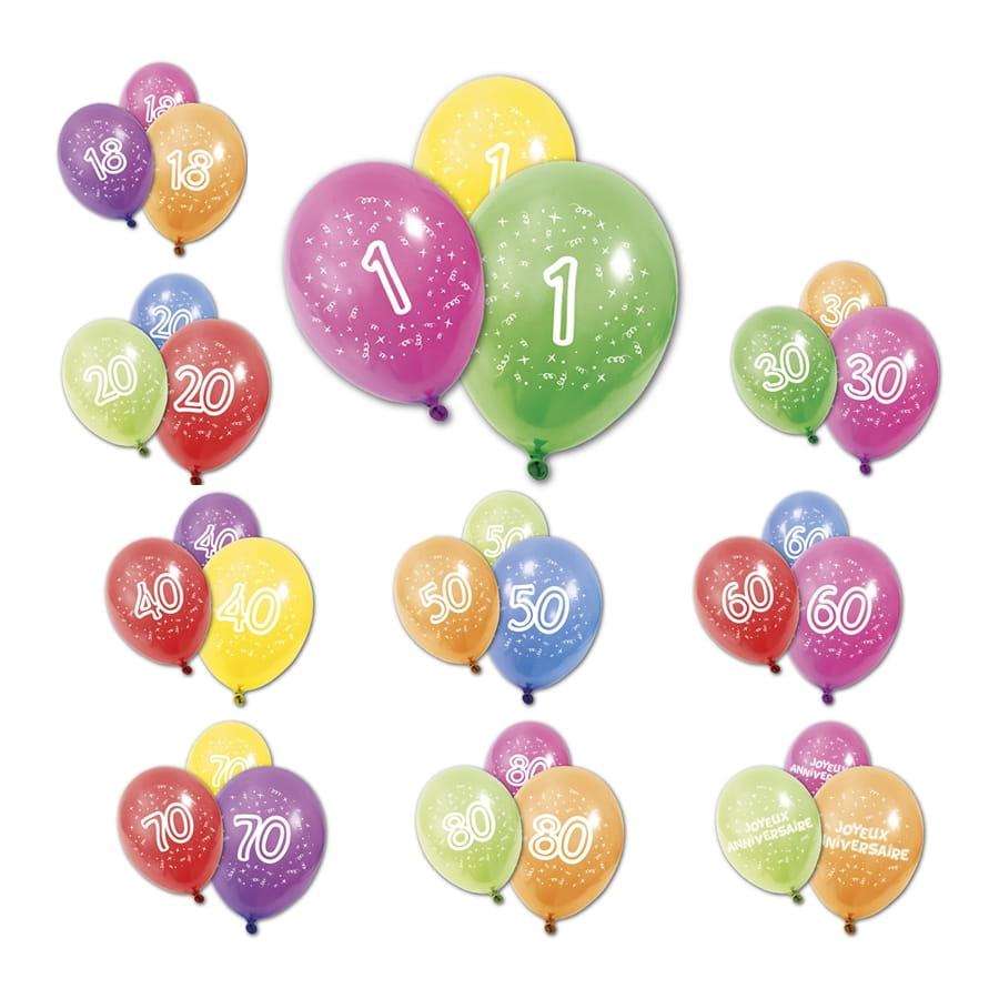 Vivez vos fêtes d'anniversaires comme jamais auparavant avec nos 8 ballons imprimé âge sur fond coloré.