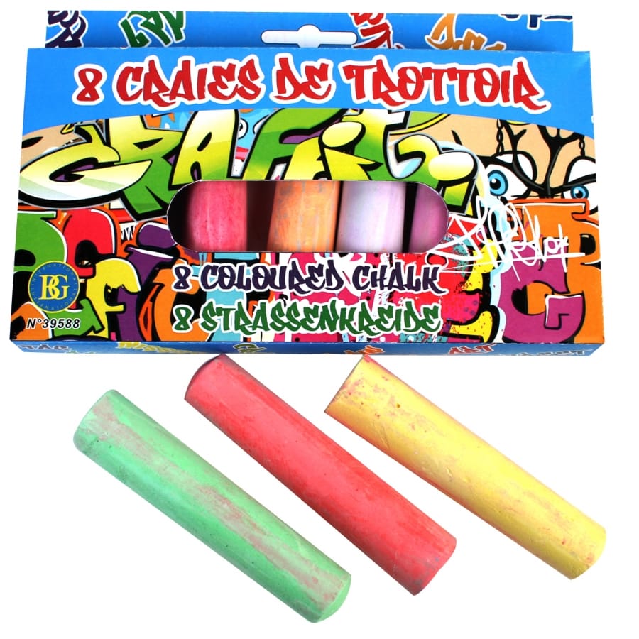 Les craies de trottoir sont des craies spéciales servant à dessiner sur du carton, du goudron ou du béton. Les enfants pourront créer de magnifiques chefs d'oeuvre artistiques grâce à cette boîte renfermant de fabuleuses craies. Elle contient 8 craies de trottoir de différentes couleurs, mesurant 10 cm chacune. Elles seront idéales pour animer un atelier de dessin. Allez les enfants, il est temps de dévoiler votre créativité !