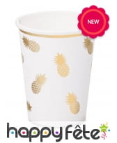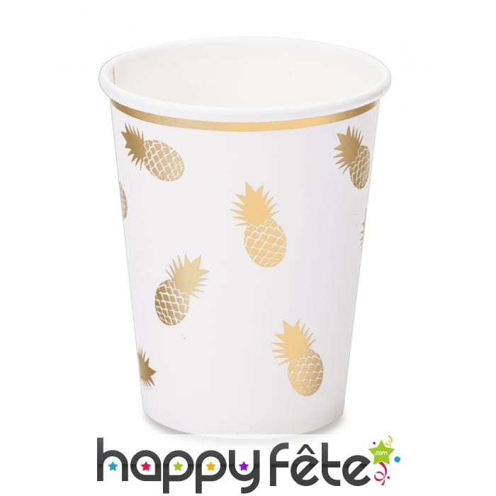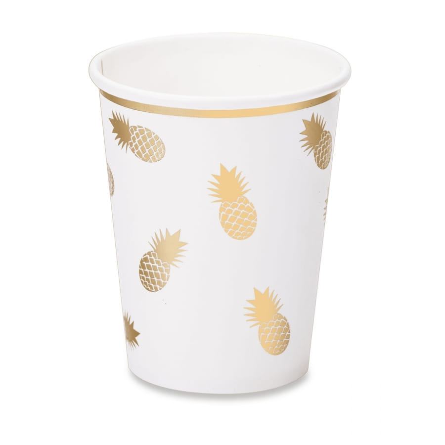 Ce lot de 8 Gobelets blancs décorés d'ananas dorés sera un allié de choix dans la décoration d'une table festive thème tropical ou exotique.