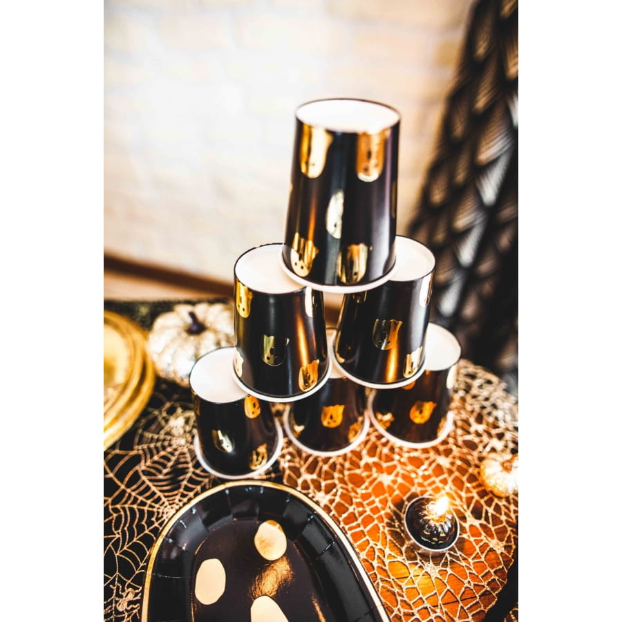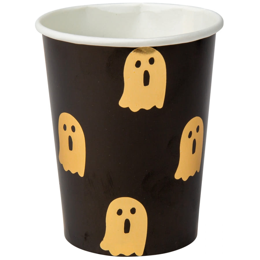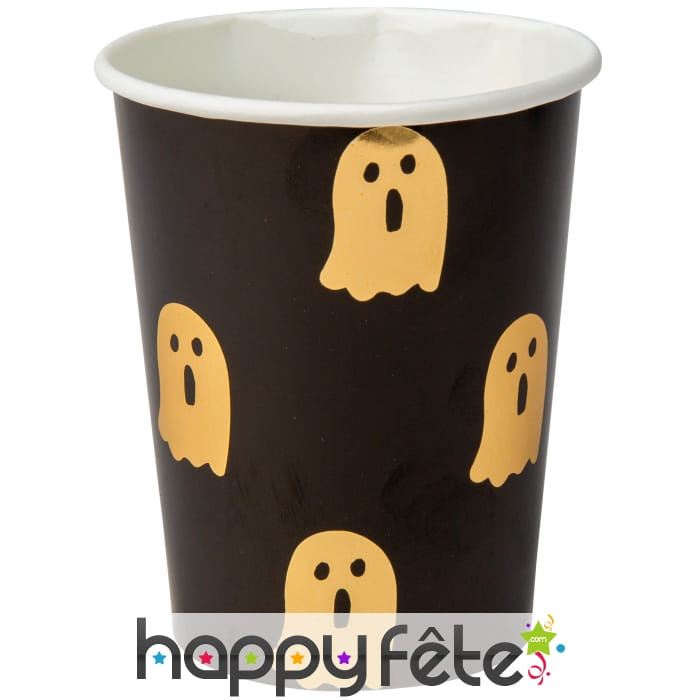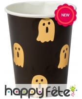 Préparez une déco à la hauteur de l'événement, avec les 8 gobelets décorés de fantômes sur fond noir.