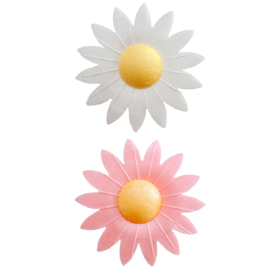 Ces décorations en forme de fleurs représentent de magnifiques marguerites blanches et roses.