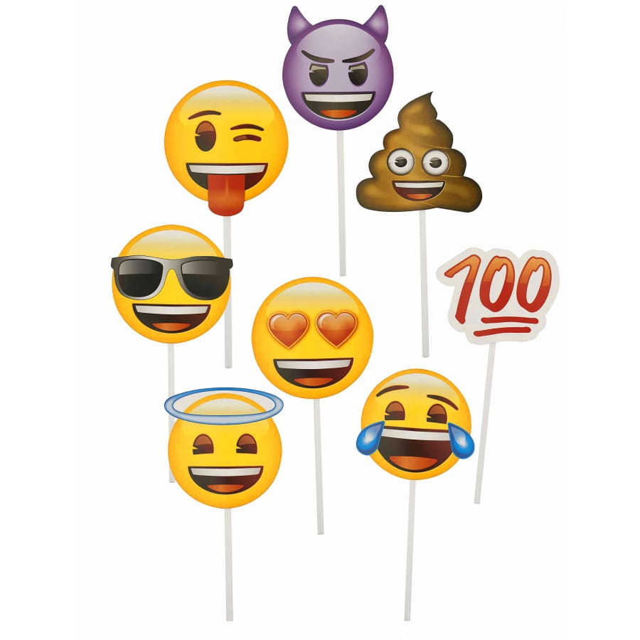 8 smileys composent ce kit photobooth et sont à utiliser avec des tiges blanches en plastique que l'on placera devant le visage pour effectuer des prises photo super fun.