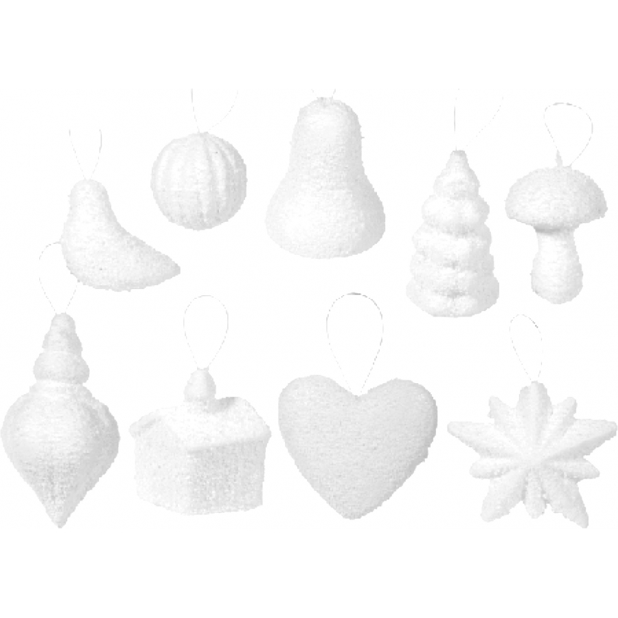 Suspensions de Noël, vendues en lot de 9. Chacune des suspensions mesure 6 centimètres environ. Lors de la commande, vous ne pourrez choisir ni le modèle ni la couleur des suspensions. Vous recevrez la boule, la cloche, le sapin, le champignon, le coeur, la maison, l'étoile ou la lune. Ensemble elles forment une magnifique collection d'objets de Noël.