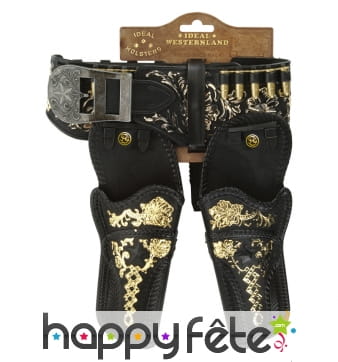 Les films western les ont fait connaître à travers des acteurs cultes comme Clint Eastwood par exemple, ou encore les bandes dessinées à travers le très célèbre Lucky Luke, il s'agit bien sûr des fameux cow-boys. D'ailleurs, se déguiser en cow boy est une idée géniale pour une fête, autant pour les petits que les plus grands, à l'occasion d'un carnaval ou Halloween par exemple. Si vous êtes tentés, faites un petit tour du côté de notre section déguisements pour déceler une belle tenue de cow boy. Mais ce qui caractérise le plus un cow boy et dont il ne se sépare jamais, c'est son arme. Ce sont ces armes à feu que nous voulons mettre en exergue à travers cette page, afin de compléter votre tenue de cow boy. N'ayez aucun souci, elles sont toutes fausses bien évidemment. Vous pourrez trouver des ceintures simple ou double holster de différentes couleurs, ou encore des étuis, des pistolets à eau, en métal, des carabines, et même des cartouchières à porter en bandoulière. Nous avons même une carabine exceptionnelle qui produit son et lumière. Très sympa tout cela, n'est-ce pas ?
