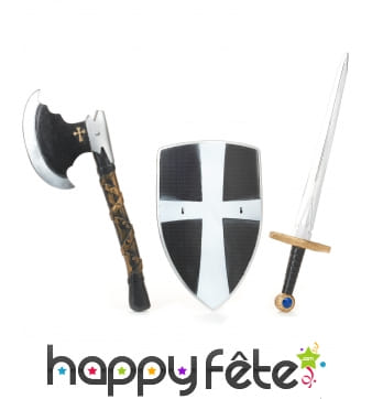 Cette catégorie d'accessoires contient toutes les formes de boucliers imaginables. Par exemple, vous trouverez ici des boucliers de chevaliers médiévaux, de guerriers gaulois ou de Vikings. Nombreux de ces boucliers sont livrés sous forme de sets complets, vous permettant ainsi d'obtenir par la même occasion une épée ou autre arme de chevalier ou de guerrier. Le seul bouclier livré seul est celui d'Achille, qui possède un effet très réaliste grâce à sa couleur, à sa matière et au design de l'accessoire. Ces sets conviennent plutôt à des déguisements masculins, mais ils seront parfaits pour un déguisement féminin également tel que celui de guerrière Amazone.