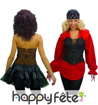 Cherchez le corset qui vous ira le mieux en cliquant sur notre catégorie "corset". Vous trouverez ici des corsets de plusieurs tailles pour femme ou adolescente. Par exemple, nous vous proposons un corset "Fever" extrêmement sexy pour vos déguisements de danseuse burlesque, Charleston ou pour ajouter une touche personnalisée à vos tenues gothiques. De plus, vous aurez également la possibilité de choisir un corset de pirate en suédine, disponible en marron ou en noir et en plusieurs tailles. Cet accessoire peut être livré en moins de 24 heures si vous le commandez tout de suite.