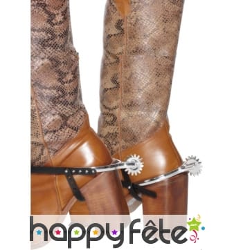 Cherchez dans cette catégorie tous les accessoires dont vous aurez besoin pour vos pieds et pour vos jambes. Ceux-ci incluent des éperons que vous pourrez rajouter sur vos chaussures pour agrémenter votre déguisement de cowboy, des guêtres de luxe pour un style dandy ou Charleston ou même pour un personnage classique ou des bracelets dorés pour les chevilles, qui ajouteront une touche plus féminine, exotique ou orientale à votre personnage. Certains des accessoires proposés sont vendus sous forme de set comme, par exemple, le set zoulou qui contient les bracelets pour les mains ainsi que les jambières. Vous trouverez aussi des paréos avec des imprimés multicolores pour vos fêtes exotiques.