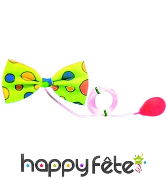 Quoi de plus drôle qu'un clown ? Dans sa tenue loufoque avec ses habits multicolores, ses grosses chaussures et son visage peinturluré avec un gros nez au milieu de la figure, il se prend à nous faire de drôles de tours qui nous font toujours rire. Comment y résister ? C'est pour cela que les enfants l'adorent et que se transformer en clown est l'un des déguisements favoris des grands et des petits, pour s'amuser comme des fous. Sur Happyfete, vous trouverez tout ce qu'il vous faut pour vous constituer une tenue dans notre section déguisement. Côté accessoires, nous avons aussi une large gamme de choix, notamment des nez, ou ici des noeuds papillons. Vous en aurez de toutes les sortes : très original en version herbe avec une fleur blanche au milieu, à paillettes, à carreaux, avec des bonbons, à pois, tout cela bien sûr de toutes les couleurs. Nous avons aussi des modèles uniques avec lance-eau pour faire des farces à vos amis. Alors, à vos paniers !