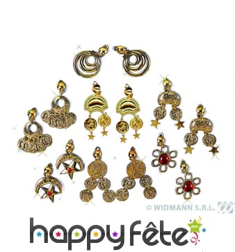 Nos bracelets dorés, boucles d'oreilles et fausses pierres précieuses vous permettront d'ajouter une touche d'élégance et de mystère à votre tenue Orientale.