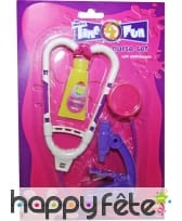 Ce set d'accessoire de docteur sera un très joli cadeau pour les petits qui aiment jouer au docteur ou vous pourrez vous en servir comme accessoire si vous vous déguisez en infirmière ou docteur pour une fête déguisé. Ce set d'accessoire est composé d'une seringue, d'un stéthoscope, de pansement, ciseaux.