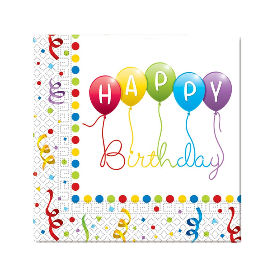 Les lettres du mot "Happy" sont imprimées dans des ballons multicolores.