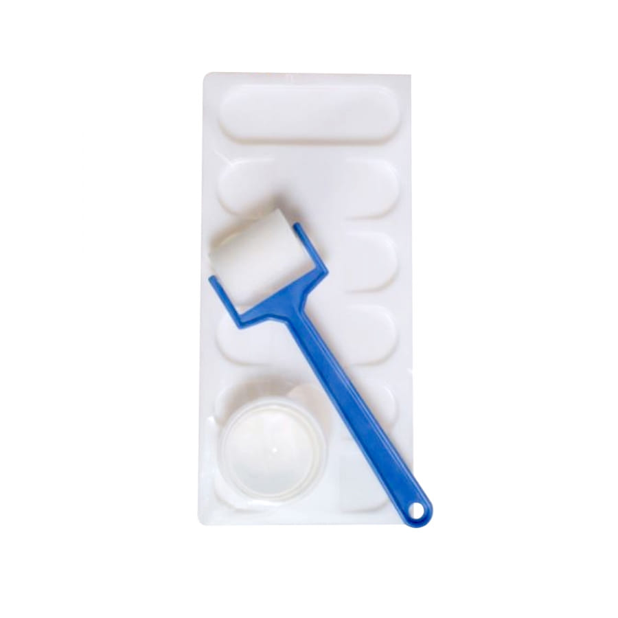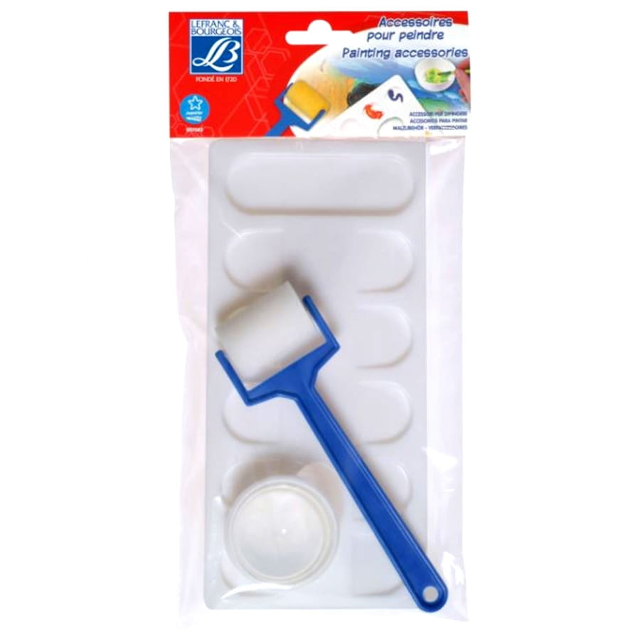 Nous vous présentons ici des accessoires de peinture Lefranc et Bourgeois, composés d'un rouleau, d'une plaquette et d'un pot.