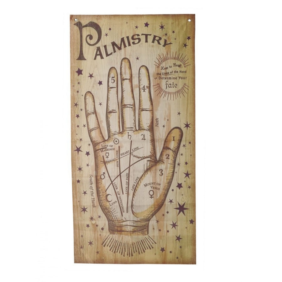 Au dessus de celle-ci, l'inscription "Palmistry" est écrite en marron.