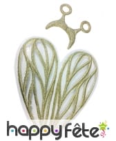 La paire d'ailes est en plastique souple et transparent couvert de sequins couleur or.