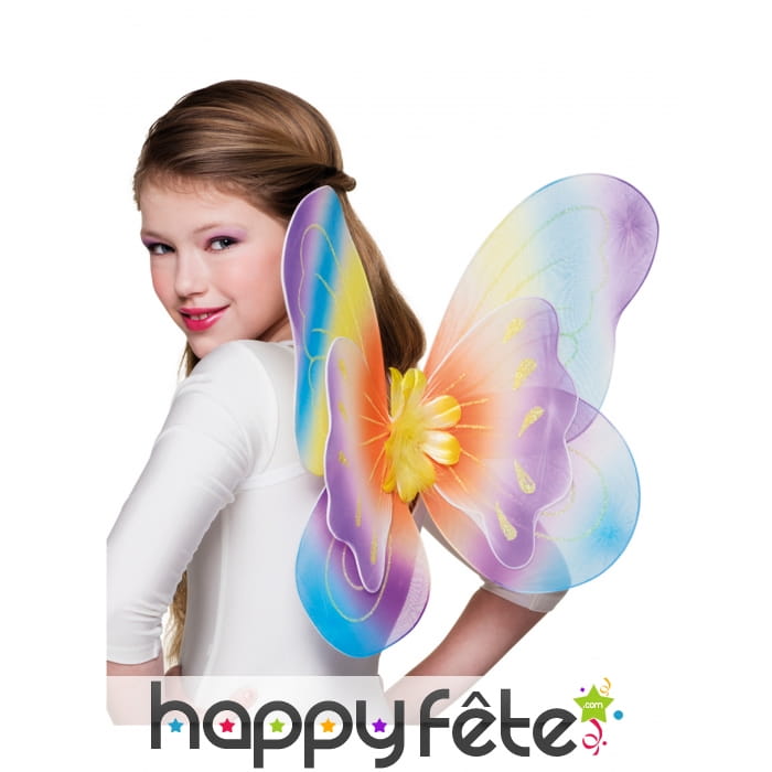 Les ailes de papillon colorées pour enfant sont recouvertes d'un voile élastique multicolore.