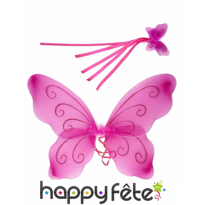 Ce kit composé d'Ailes et baguette de papillon rose pour enfant complétera à merveille sa tenue de princesse.