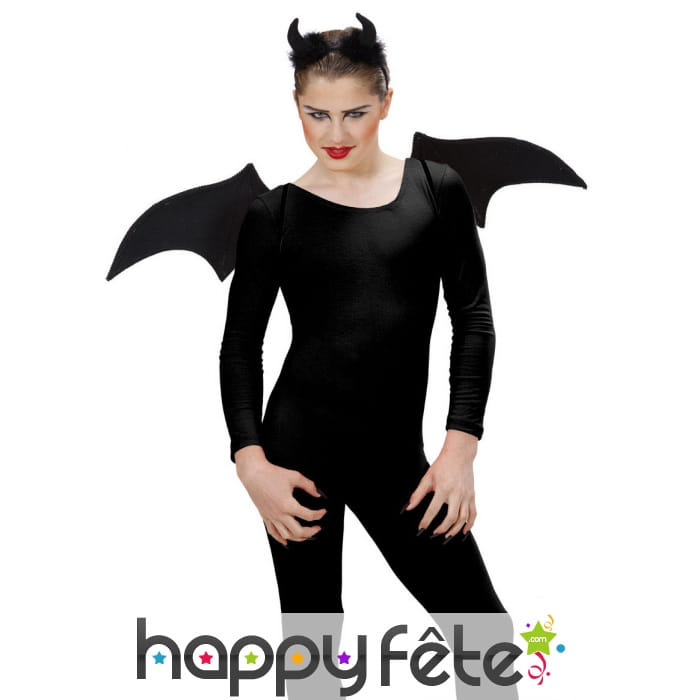 Ce kit d'ailes noires et les cornes de diablesse pour adulte vous conviendront.
