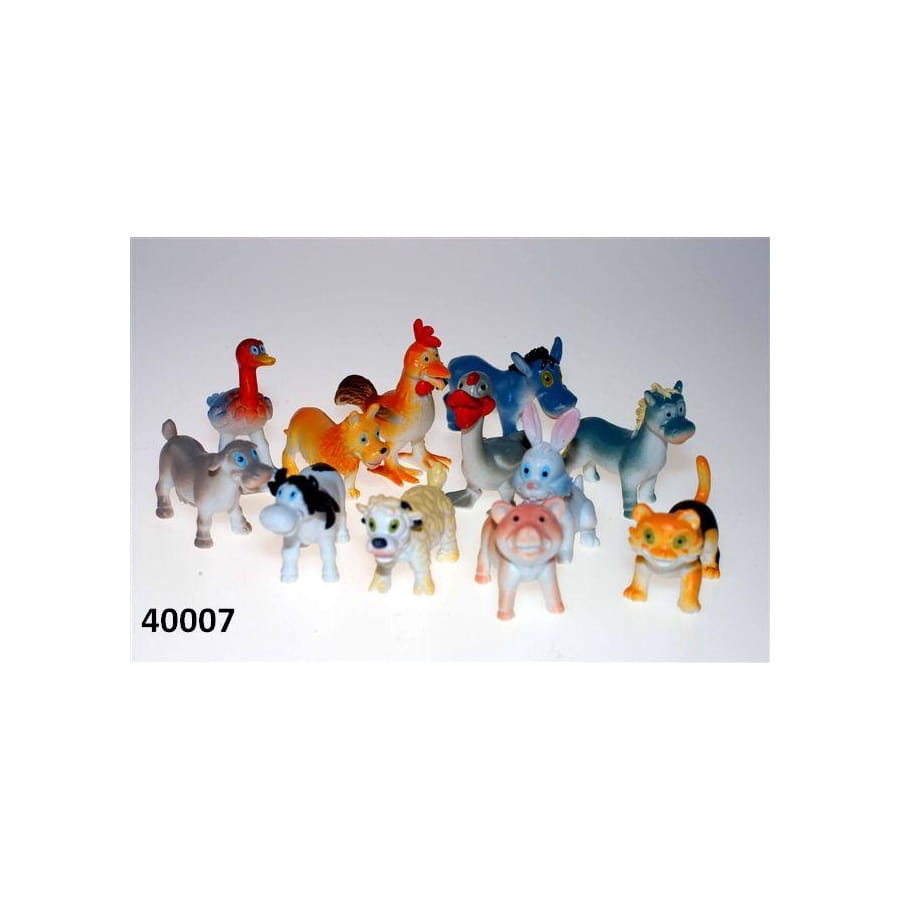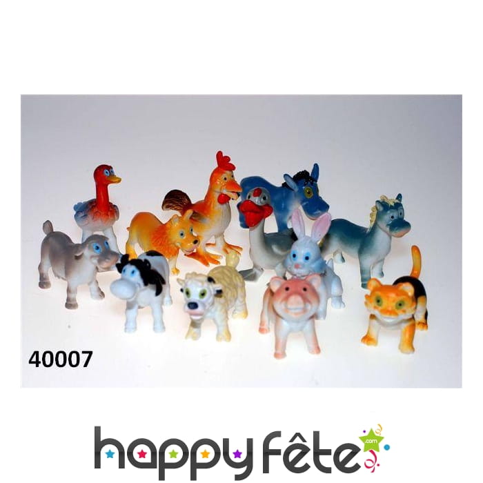 Ce lot idéal pour stand de kermesse va attirer les regards ! Commandez les animaux de la ferme en petits modèles pour le grand bonheur des enfants. Coq, cochon, lapin, vache, etc sont des jouets en plastique, chacun mesurant environ 4 à 5 cm. Leurs couleurs sont authentiques et assorties. Ils se vendent à l'unité, et vous n'aurez pas le choix du modèle à la commande. Ces animaux mignons et distrayants apprendront à vos enfants la joie de la vie à la ferme !