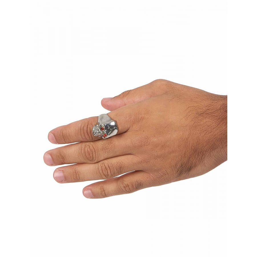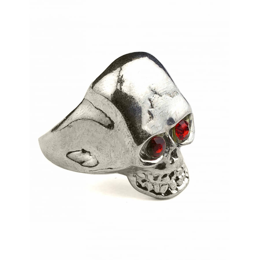 Anneau en métal noir en forme de tête de mort. Cet accessoire convient à plusieurs déguisements tels que diable, vampire, démon ou encore, membre de la famille Adams.