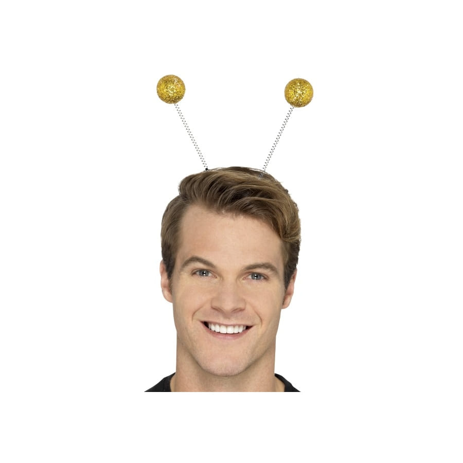 Revêtez ces antennes dorées, en forme de boules, pour toutes sortes de déguisements, notamment en version disco-paillettes, pour compléter une tenue dorée, pour le carnaval ou le Nouvel An. Les antennes sont montées sur un serre-tête noir très fin, soutenues par des ressorts très fins, pour que vous puissiez les porter élégamment sur les cheveux.