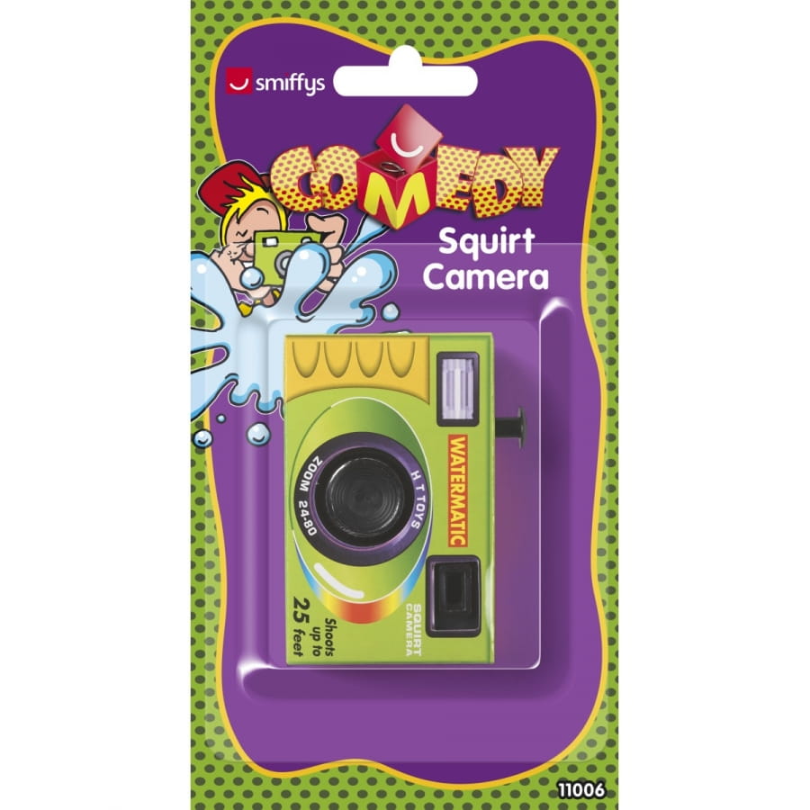 Appareil photo lanceur d'eau, de couleur vert et jaune, pour enfant de plus de 3 ans. Ce petit jouet est idéal pour un poisson d'avril.