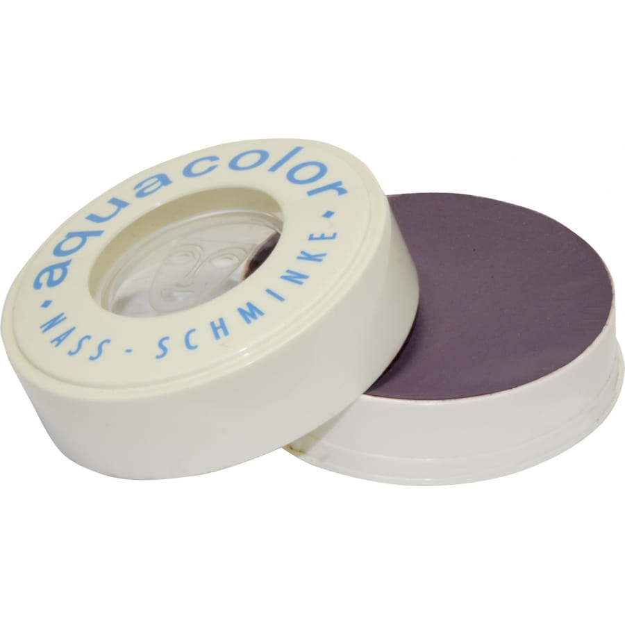 Pot de maquillage AquaColor de couleur lavande. Le pot contient 30 millilitres de maquillage et peut servir pour environ 35 visages. Utilisez une éponge ou un pinceau pour l'appliquer et de l'eau et du savon pour l'enlever. Utilisez une poudre transparente Kryolan pour fixer le tout.