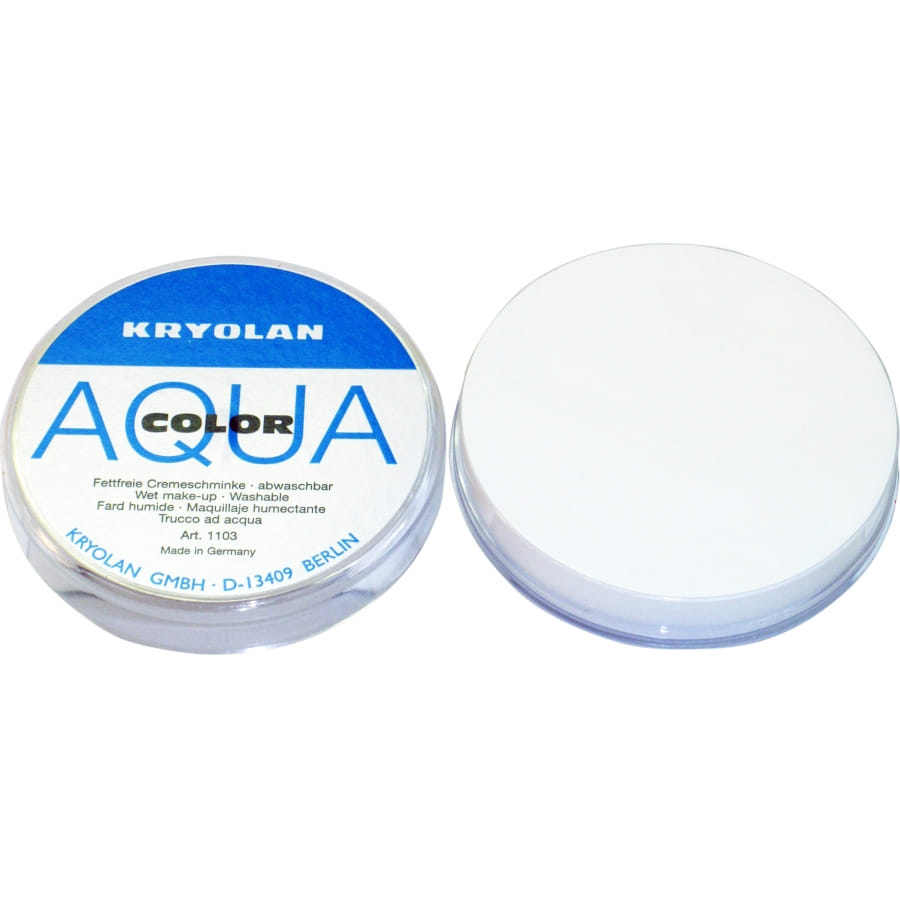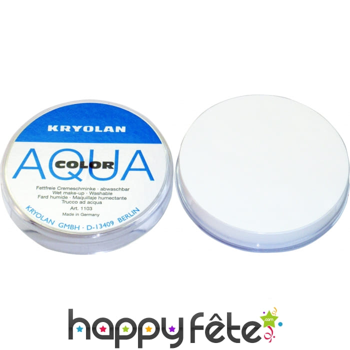 Très facile à utiliser, ce fard s'applique à l'aide d'une éponge ou d'un pinceau. Aqua Color blanc de la marque Kryolan de qualité professionnelle. La capacité du pot est de 55 millilitres. Pour une tenue prolongée, utilisez une poudre sèche ou transparente. Vous pourrez l'utiliser pour environ 30 visages. Il s'enlève avec un peu d'eau et de savon. Il est parfait pour un déguisement de clown ou d'Halloween.