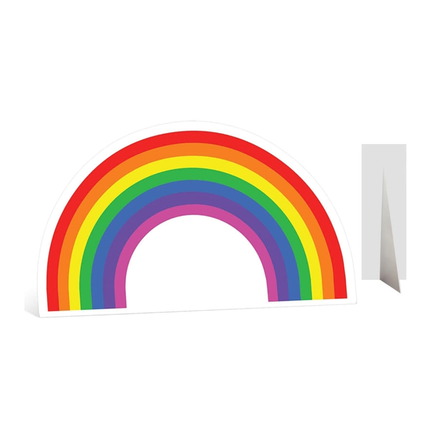 La figurine représente un arc-en-ciel sur fond blanc et dispose d'un pied à l'arrière pour assurer la stabilité de la décoration.