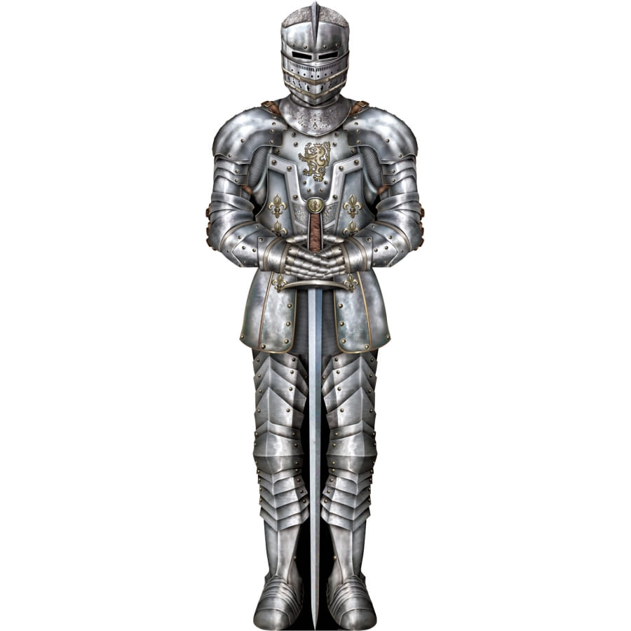 Armure de chevalier entièrement fabriquée en carton de couleur argent. Cette superbe décoration mesure 1 mètre 80 de hauteur. Rien de tel pour intimider vos invités et les mettre dans une ambiance médiévale pas comme les autres!