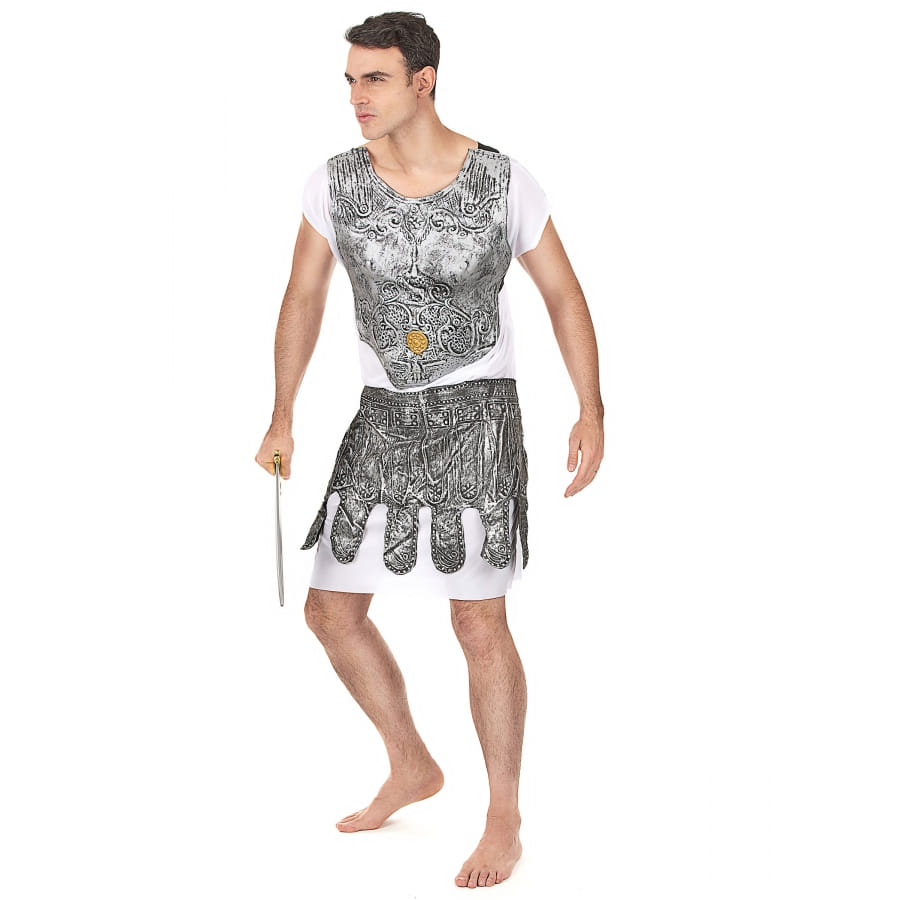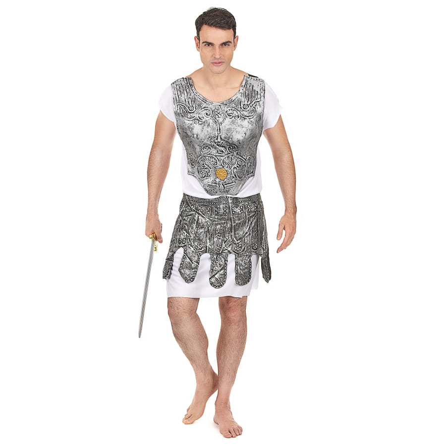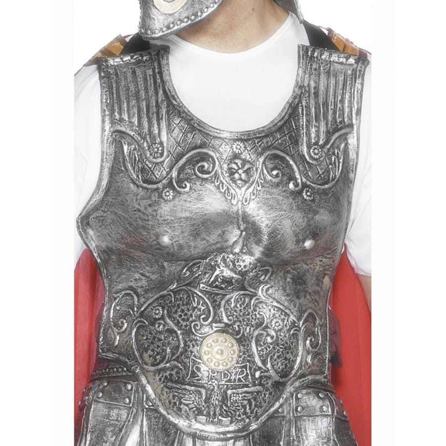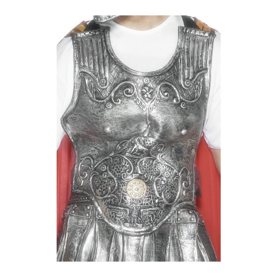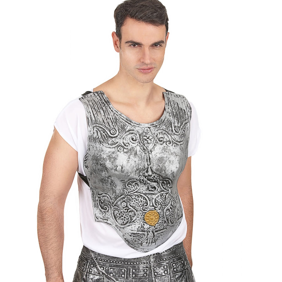 Armure de Romain de couleur argentée, pour homme. Afin de lui donner un côté plus réaliste, de magnifiques ornements ont été gravés dans l'armure. Ajoutez-la à d'autres accessoires pour compléter votre déguisement de Romain.