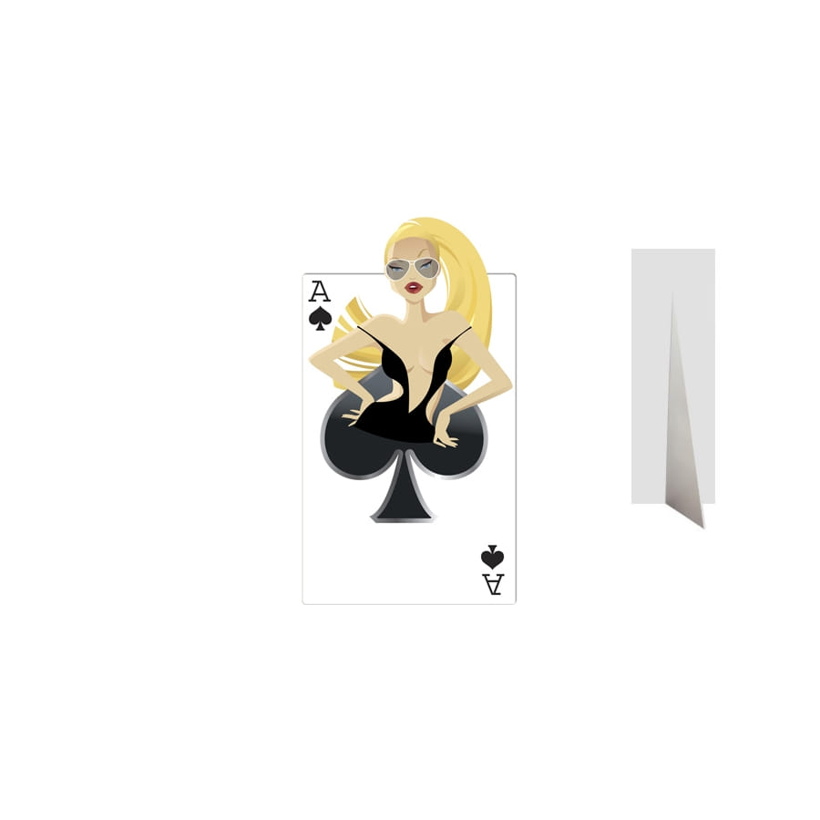 Une soirée à thème casino, une soirée poker entre amis, etc., des occasions lors desquelles vous pourrez utiliser cet as de pique sexy géant en carton plat comme article de décoration. Cette grande figurine représente un as de pique, à travers lequel une belle femme blonde en robe noire assez décolletée sort. Le tout est de couleur noire et blanche et mesure 162 cm de haut.