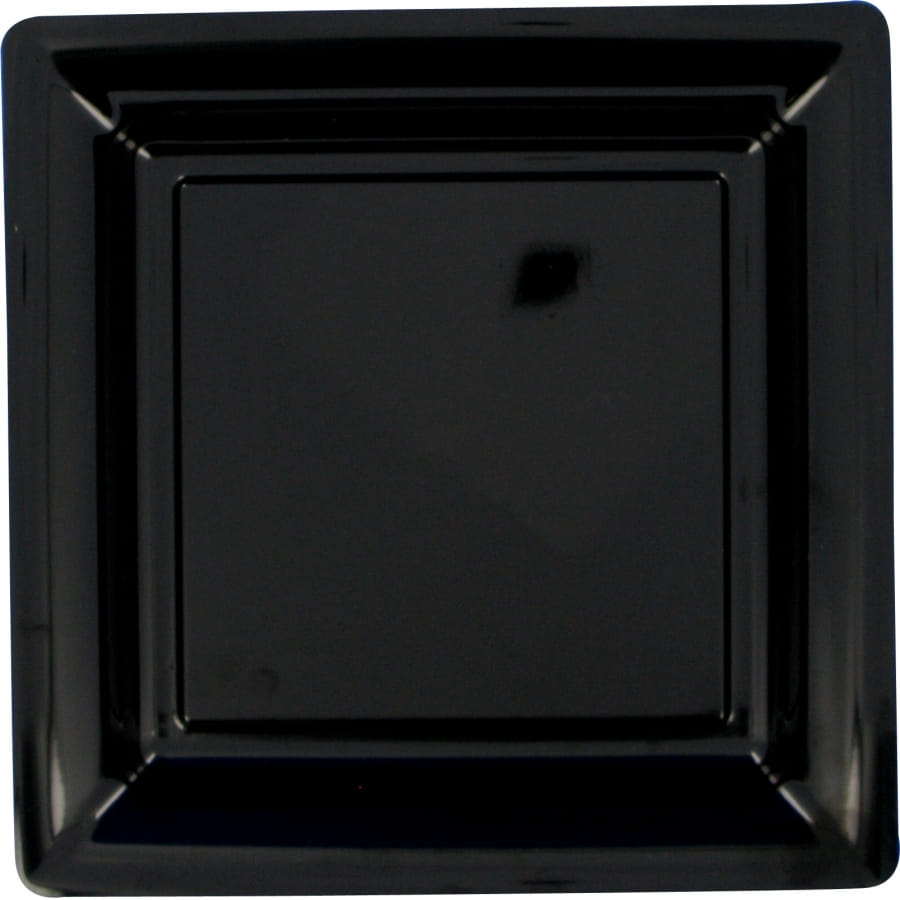 Assiettes carrées en plastique de couleur noire, vendue par lot de 12. Chacune des assiettes mesure 290 millimètres carrées. Emportez avec vous cette douzaine d'assiettes lors d'un pique-nique!