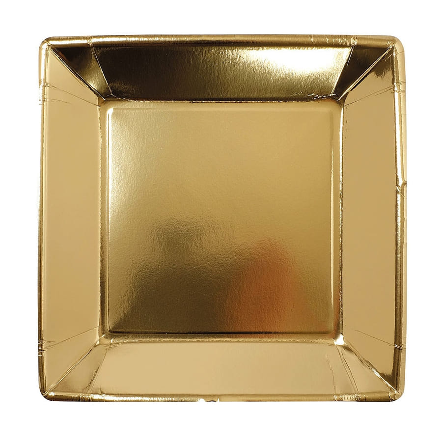 Faites briller une déco VIP pour le nouvel an avec les assiettes carrées dorées de 23 cm, par 8.