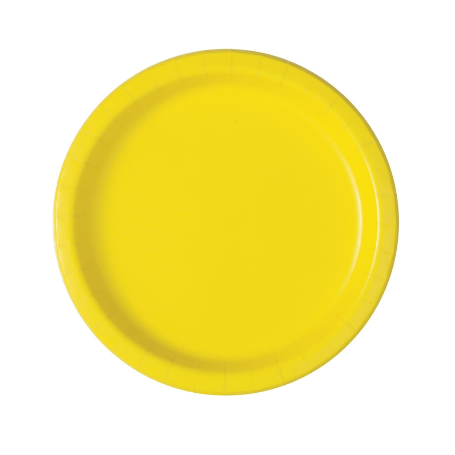 Soignez les derniers détails d'une déco qui met le jaune à l'honneur, avec les assiettes jaunes en carton.