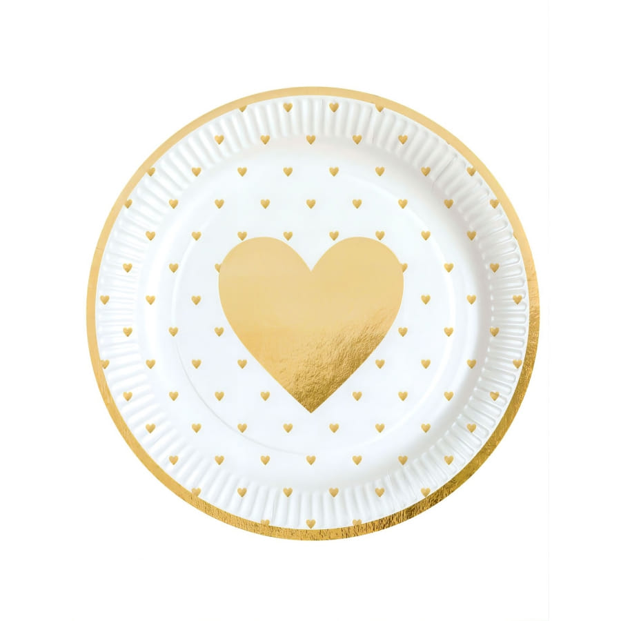 Chaque assiette est conçue pour être à la fois un régal pour les yeux et une véritable déclaration. Elles sont blanches, comme une page vierge, prête à être remplie de vos délicieux mets. Mais ce qui distingue vraiment ces assiettes, c'est ce magnifique coeur doré en plein centre. Un coeur grand et fier, prêt à accueillir toutes vos gourmandises avec passion.