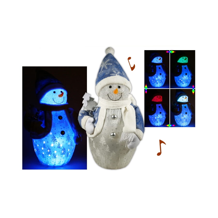 Egayez votre salon ou votre arbre de Noël en y ajoutant ce joyeux petit automate. Ce dernier est en forme de bonhomme de Noël, avec chapeau et écharpe. Il mesure 45 centimètres de haut et produit de la musique tout en s'allumant.