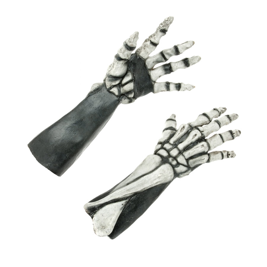 Afin de parfaire un déguisement d'Halloween, nous vous présentons les avants-bras et mains squelette en latex.