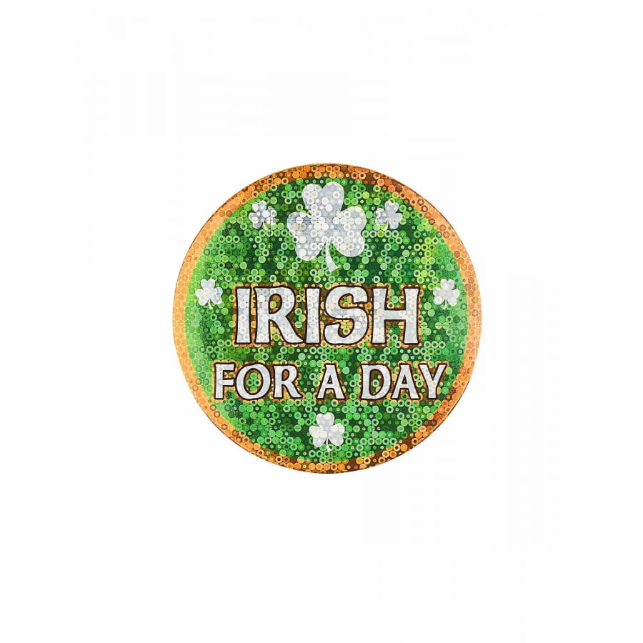 Faites un rappel de la Saint Patrick sur votre tenue du jour grâce à notre badge rond Irish for a day de 9cm.