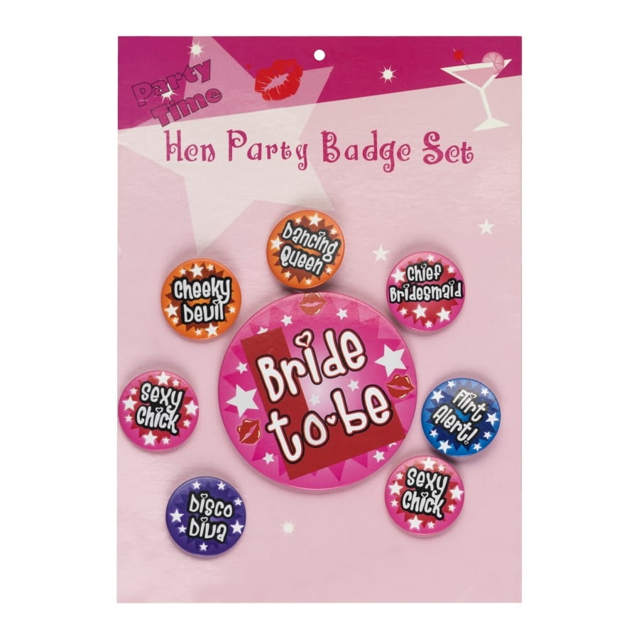 Badges de couleur bleue, blanche et rose, pour soirées entre filles, vendus en lot de 8. Ces badges sont idéaux pour un enterrement de vie de jeune fille rempli de folie ou pour une soirée arrosée entre copines dans une boîte de nuit!