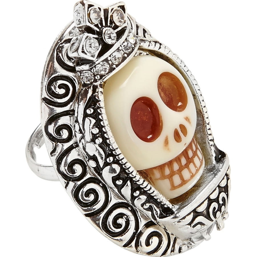 La bague argentée crâne marron pour adulte mesure 4 x 3 cm.
