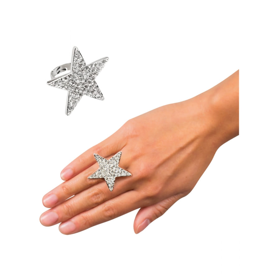 La bague avec étoile recouverte de strass argenté est un bijou pour femme.